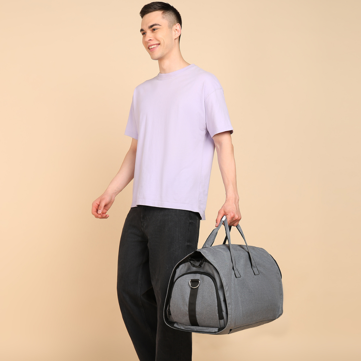 The convertible bag is designed for effortless conversion, allowing users to switch between a duffel and a garment suit hanger bag with ease.