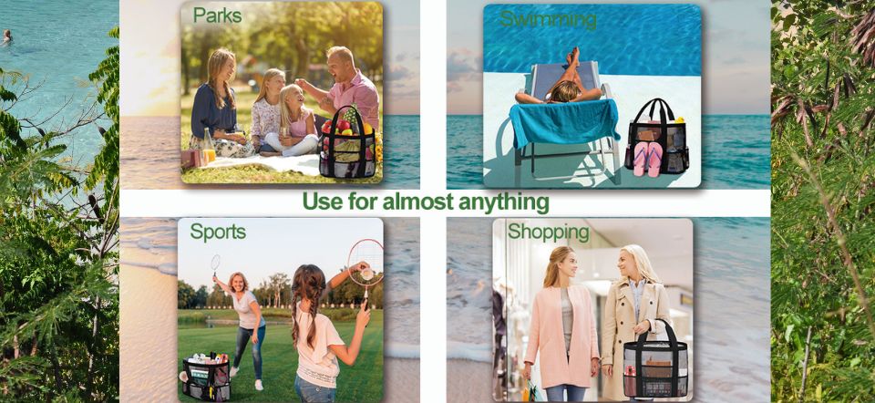 Perfect for travel, beach, gym, swim, toys, and picnic gear, this versatile folding mesh tote is ideal for outdoor enthusiasts!