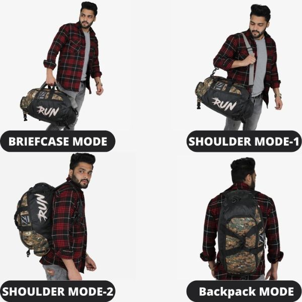 ✔️3 IN 1 BENEFIT: This FUOCO duffle bag is designed in such a way that it can be used as Gym bag cum travel bag. It can also become backpack. It has long belt for carrying. If you don't want to use the shoulder straps, it can be hide in a zipper closure pocket on the back.